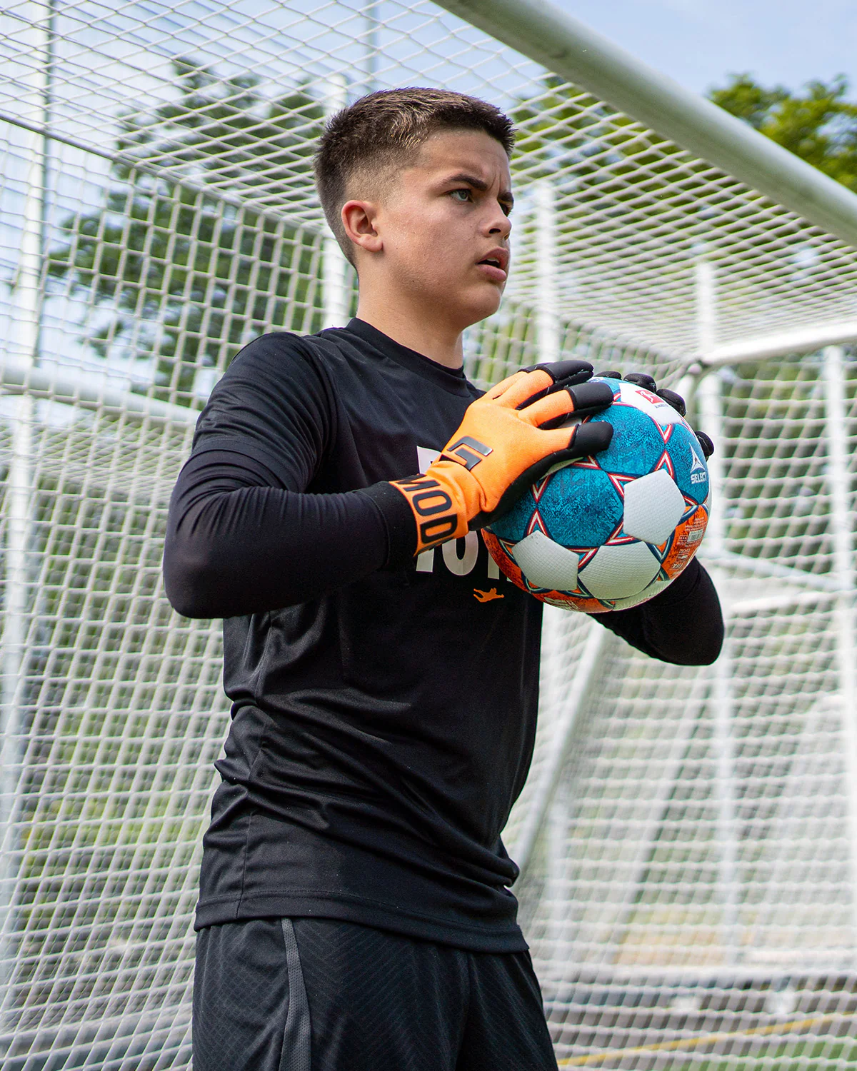 Der Gripmode Air Orange stammt aus der beliebten Air-Serie für Torwarthandschuhe. Mit seinem knalligen Orange und erstklassigen Materialien ist dieser Handschuh perfekt für ausgefallene Torhüter:innen. Der 4mm Griptec Latex-Haftschaum gewährleistet fantastischen Grip und überzeugt mit seiner langen Haltbarkeit, unabhängig von der Wetterlage. Der atmungsaktive Neopren-Handschuhkörper bietet ausgezeichneten Komfort und ideales Feuchtigkeitsmanagement. Der eng anliegende Schnitt, welcher an der Fingerseite hinaufführt, sorgt für die bestmögliche Kontaktfläche mit dem Ball. Das innovative Easy Entry System, dank des Elastic Bottom, ermöglicht ein müheloses An- und Ausziehen. Der Gripmode Air Orange FT kombiniert Leichtigkeit, Extravaganz und starke Performance, um in jeder Spielsituation zu glänzen!