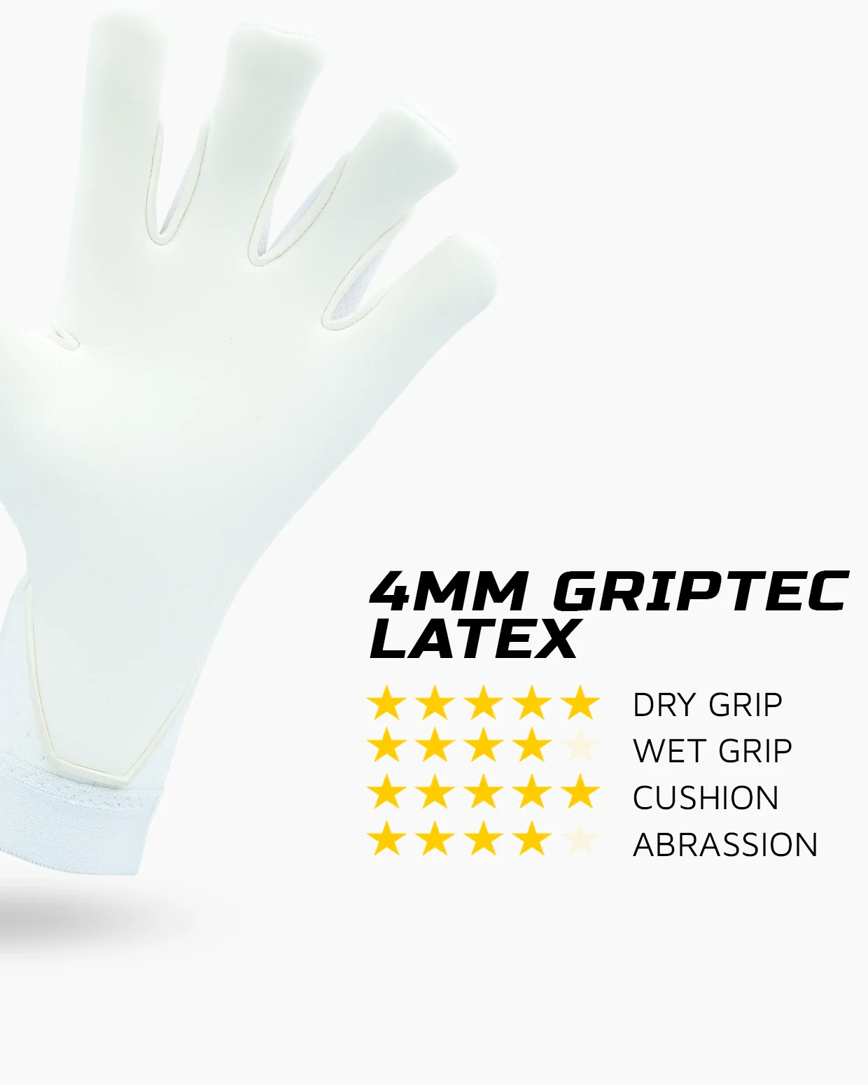 Entdecke den Gripmode Whiteout Hybrid 2.0 Torwarthandschuh in reinem Weiss und profitiere von überragender Ballkontrolle. Der 4mm Griptec Latex-Haftschaum verspricht extremen Grip und beeindruckende Langlebigkeit. Die ergonomisch angepasste Silicon-Punching Zone ermöglicht präzise Faustabwehr, während das atmungsaktive Obermaterial hervorragenden Tragekomfort und optimales Feuchtigkeitsmanagement bietet. Der eng sitzende Hybrid Cut, welche an der Fingerseite hoch geht, bietet dir eine größtmögliche Kontaktfläche mit dem Ball. Vertraue auf diesen Torwarthandschuh, um das Beste aus deinem Spiel herauszuholen.